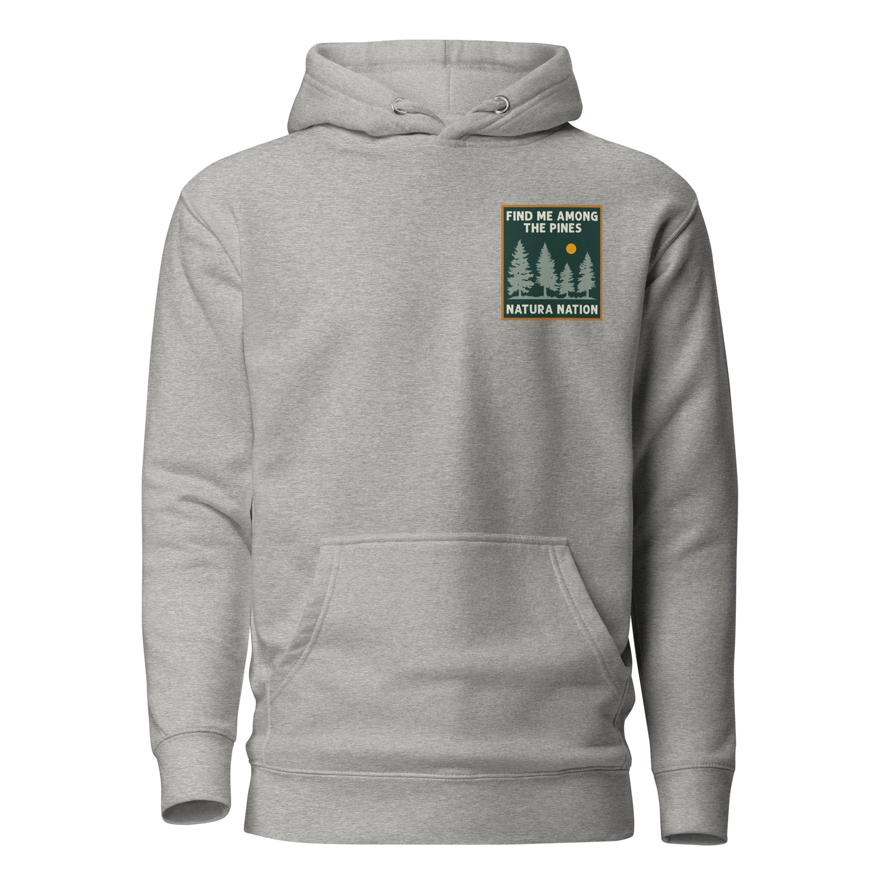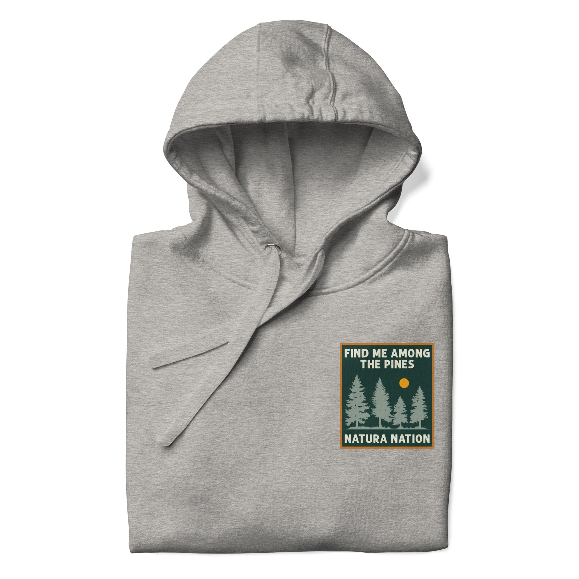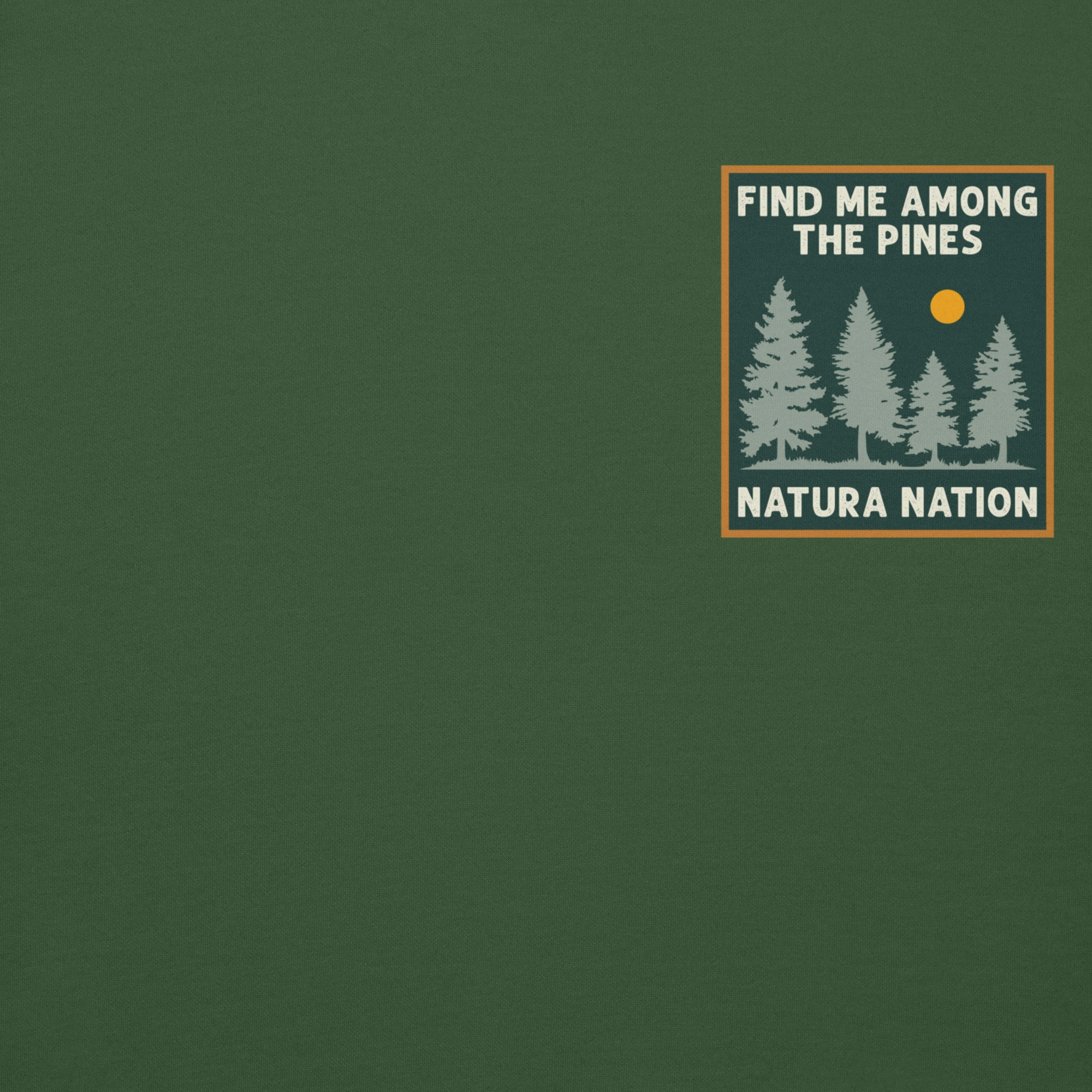 Let your heart wander with our forest green hoodie, featuring a minimalist 'Find Me Among The Pines' message that beckons you to find peace among the trees. Its deep, earthy green hue mirrors the ancient canopy, making it a true staple for any forest explorer.