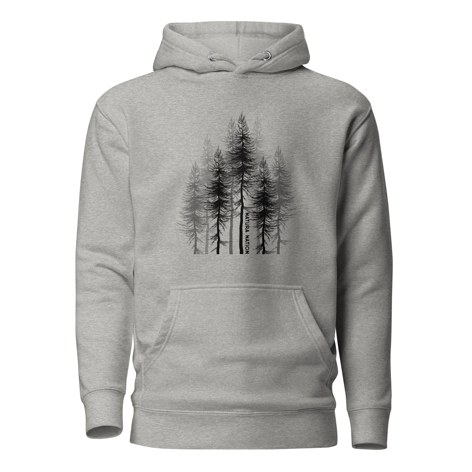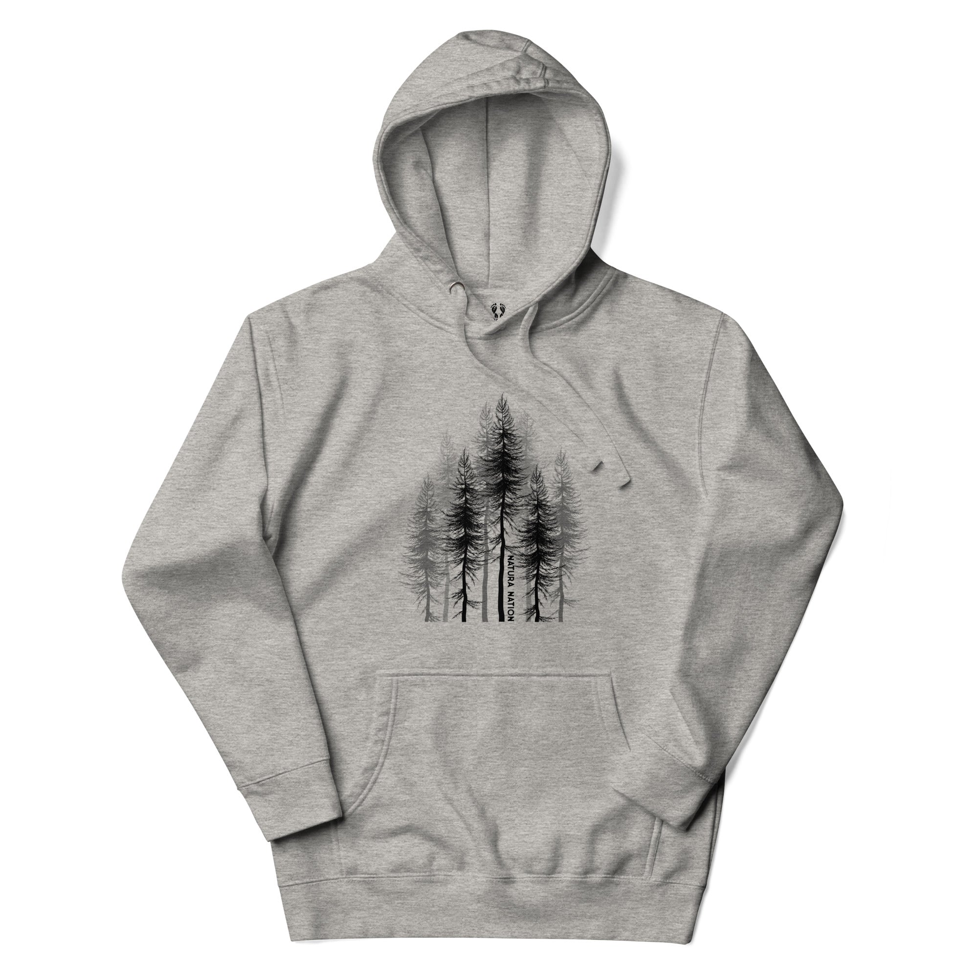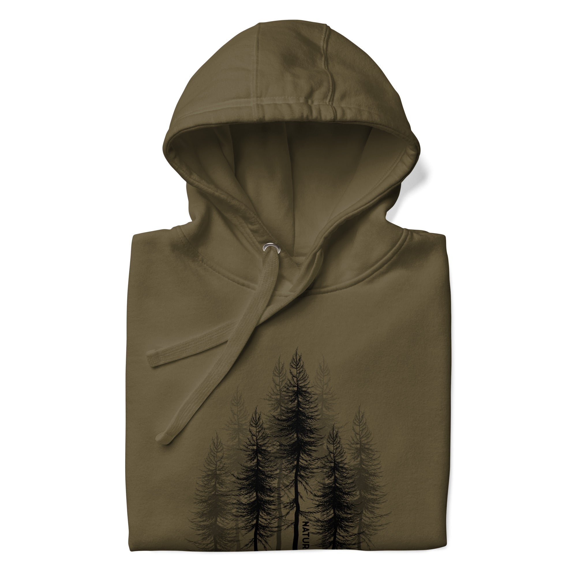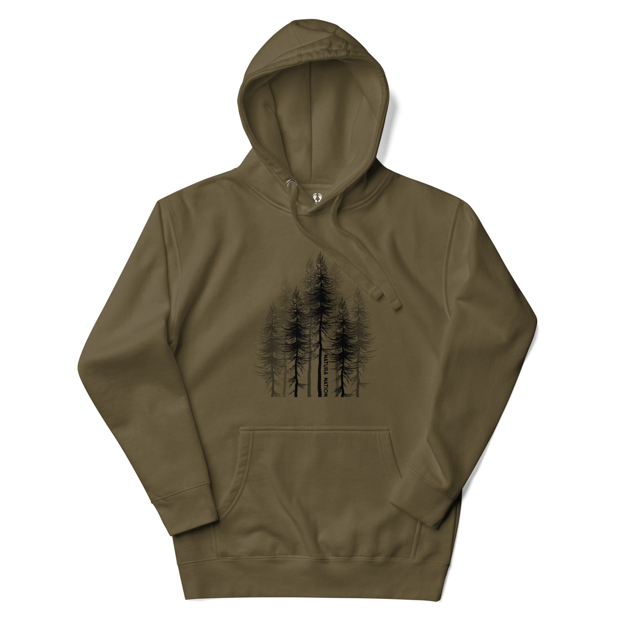 This special edition forest green pullover hoodie features our iconic pine tree design, crafted for deep forest exploration. Inspired by the dense, vibrant canopy of ancient forests, its deep, earthy tone captures the spirit of untamed wilderness and connection to nature's profound tranquility.